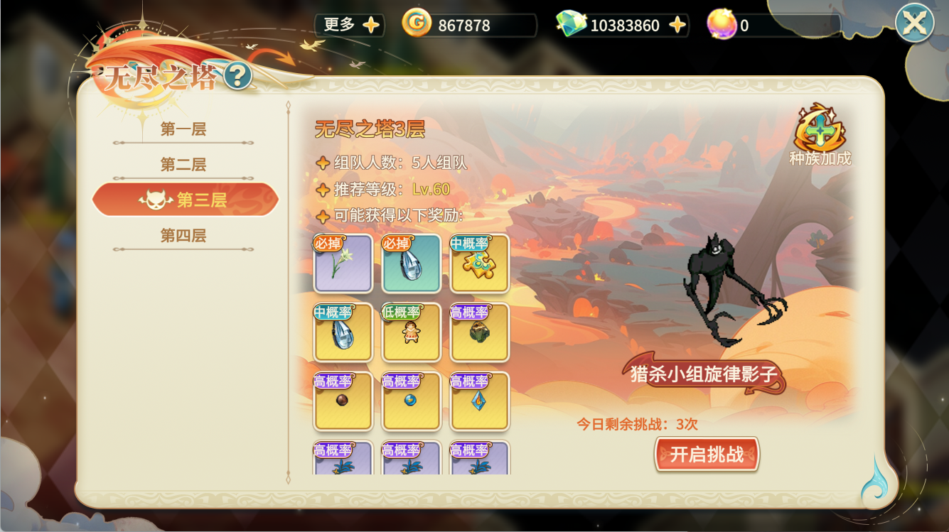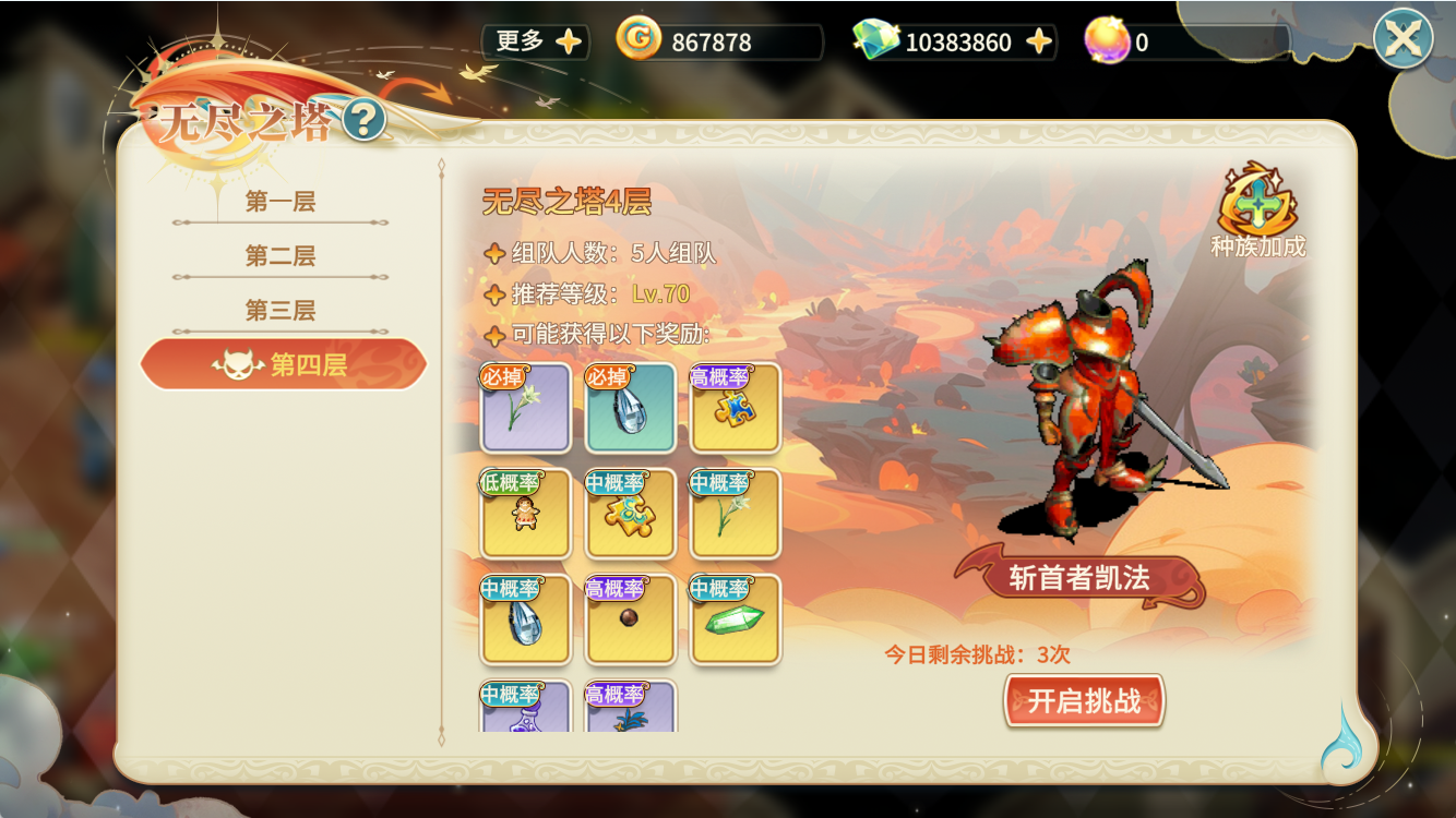 3. 无尽之塔 掉落幻宠碎片 —— 收集足够碎片可兑换 王宠;层数越高,掉落几率越大。